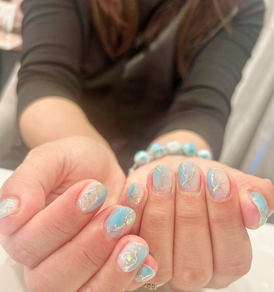 後日、ラリマーと合わせた素敵なネイルのお写真も頂きました。