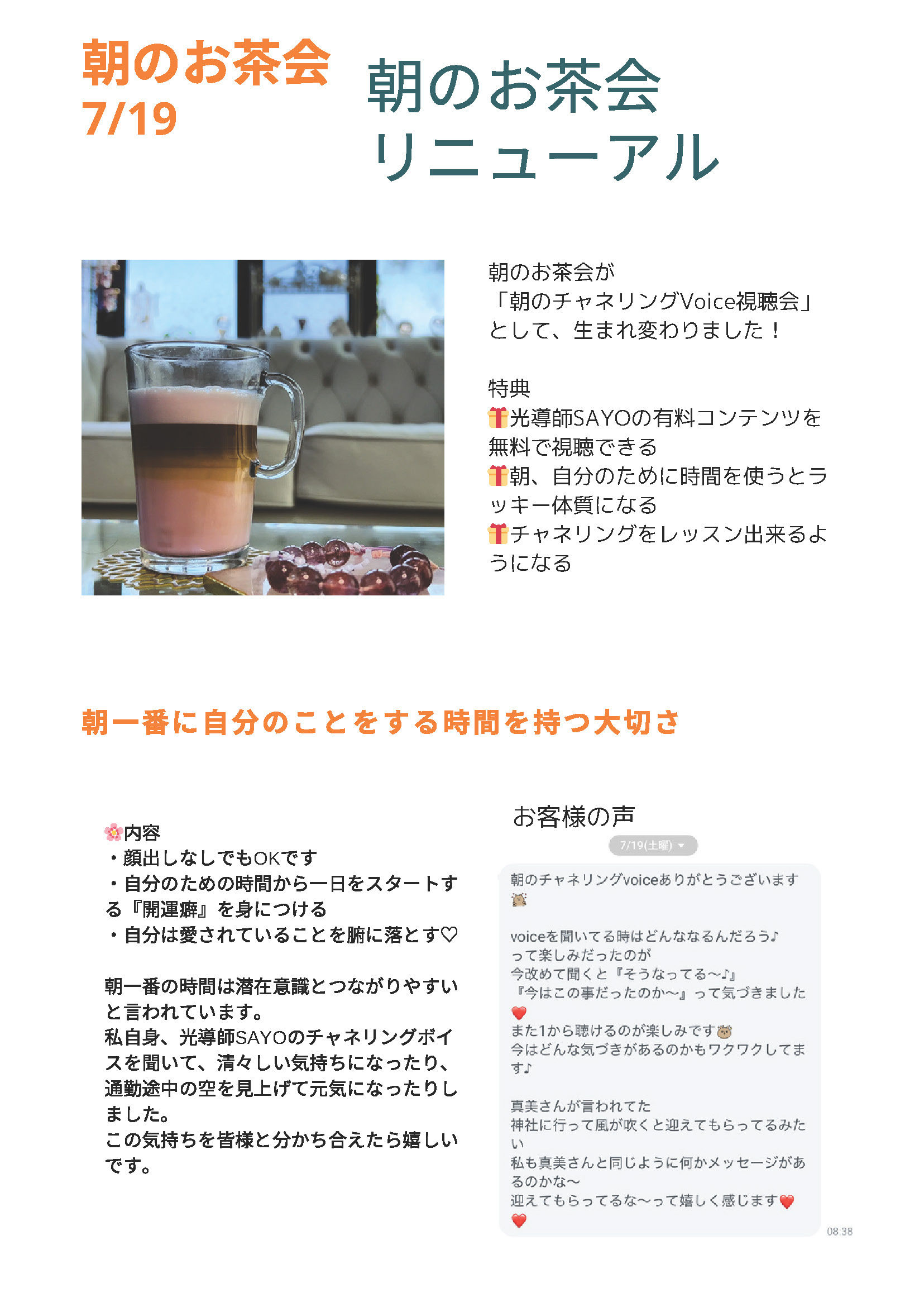 チャネリングVoice(光導師SAYOの音声)朝のお茶会では、無料でお届け致します✩.*˚